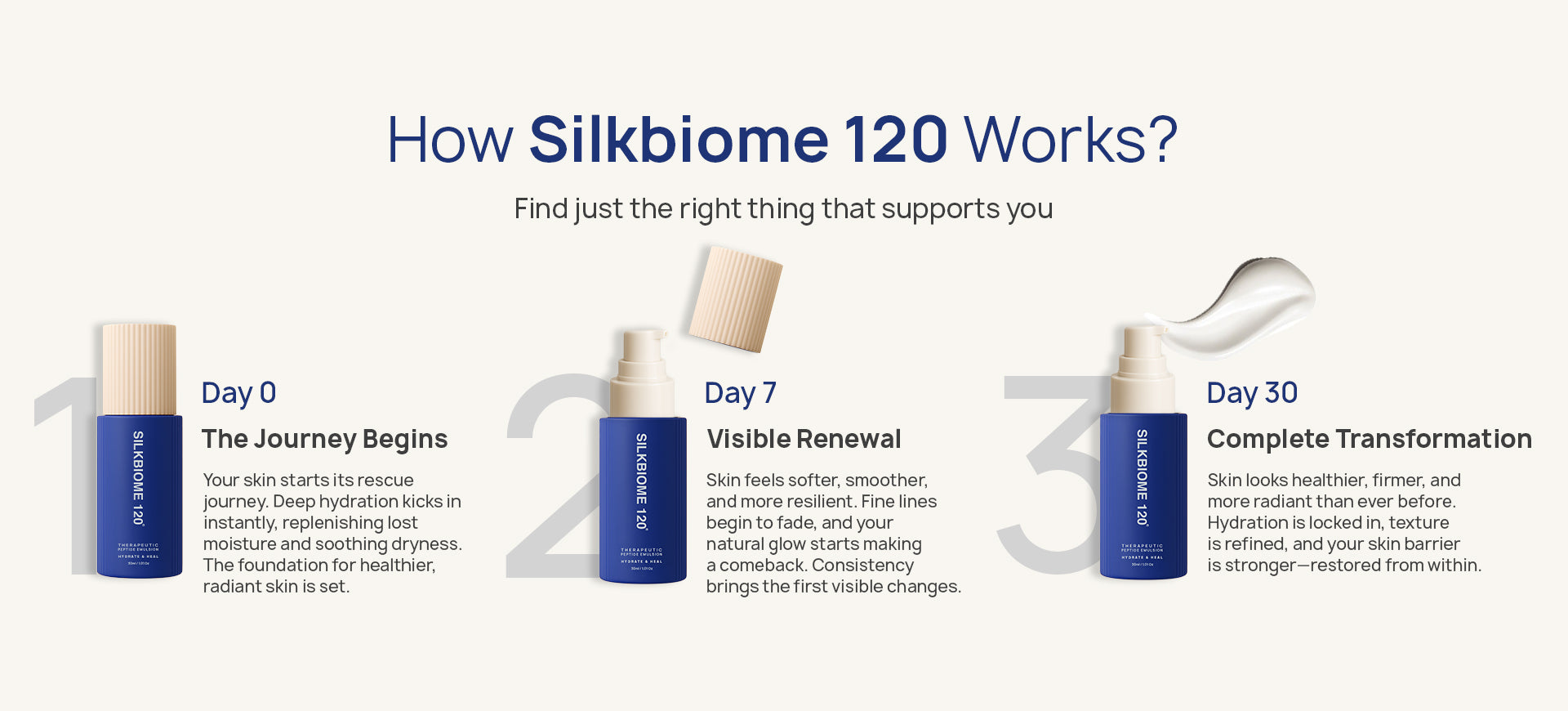 A Clinically Developed Peptide–Silk Protein Emulsion That Delivers Up To 120 Hours Of Continuous Hydration While Repairing The Skin Barrier, Soothing Irritation, And Restoring Lasting Radiance.